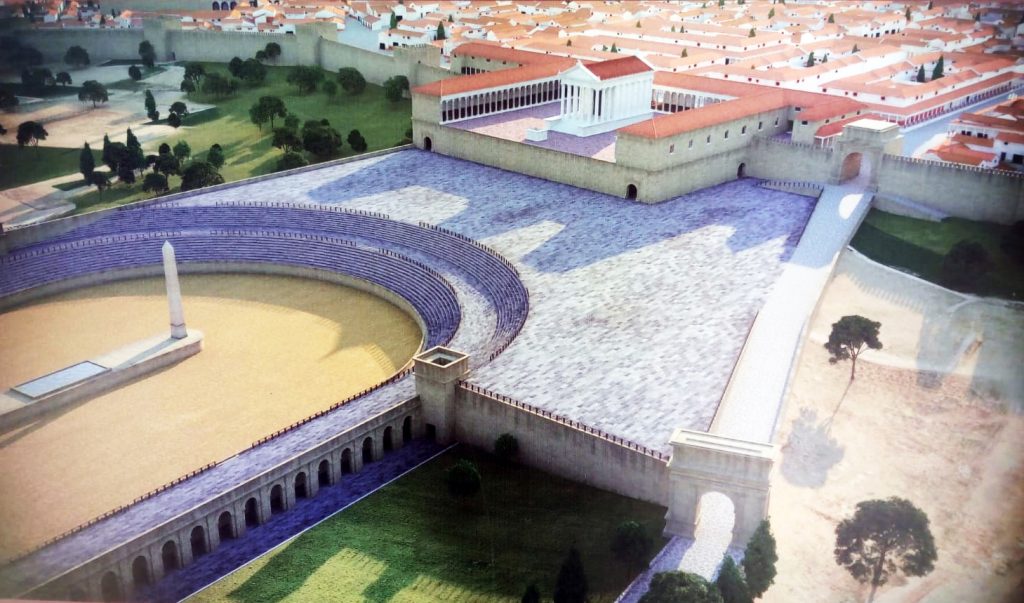 ¿Y por qué está sin tallar el lado trasero? observando la recreación virtual de nuevo ¿tendrá que ver con el hecho de ser un templo “pseudoperíptero”? y ¿qué otros “trocitos” del templo se exhiben al lado? no los hagas de menos, a ver si eres capaz de recolocarlos mentalmente en el templo donde correspondería. No olvides que en su entorno han ido recuperándose en sucesivas excavaciones numerosos elementos (estatuas togadas, pedestales, fragmentos de elementos decorativos, inscripciones) que también se ponen a su servicio, nos hablan de él. Por ejemplo “marmolejos” como era conocida popularmente esta zona de la ciudad en la edad moderna… por algo sería, ¿no? no dejarían de aflorar por aquí fragmentos marmóreos y se ganó ese sobrenombre…
