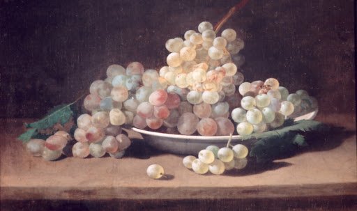 Este «bodegón de uvas» se come con los ojos, ¿verdad? Son dulce jugosidad. Realizado en óleo sobre un lienzo, es de un efecto fotográfico total, parece real.