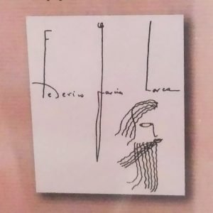 Fotos: 1) Souvenir en Granada, 2) dibujo realizado por él 3) portada libro de sus dibujos 4) dibujo suyo 5) muro literario en Leiden (Holanda) ,6) fachada Centro Lorca 7) souvenir 8) Retrato, 9) calle en Córdoba, interior tienda Centro Lorca en Granada