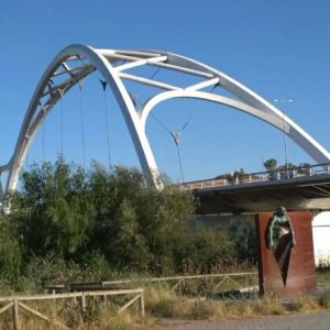 Este puente de acero es de altos vuelos, por su forma y por a quién va dedicado. ¿Te gusta, verdad? Inaugurado en enero del 2011 conecta la variante oeste con la N-437.