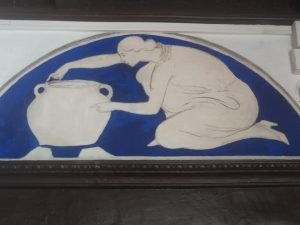 Estas musas están en el zaguán, dando la bienvenida y vistiendo sus puertas ¿Quién las hizo, entre 1910 y 1930? No hay unanimidad por los trazos superpuestos, seguramente fue un trabajo de equipo entre Julio Enrique y Rafalito – hijo del primero-.