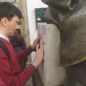 ¡Esto es poder de convocatoria! Así de atentos y concentrados se adentraron nuestros escolares en la Judería. Maimónides y la sinagoga lo valían.