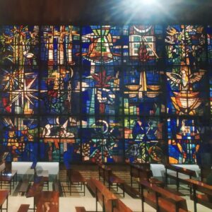 Esta, que data de 1966, es su obra vitral más conocida, en la parroquia de santa María (barrio de santa Rosa).