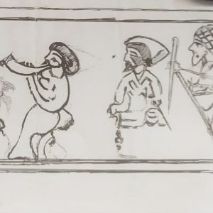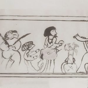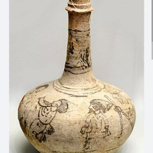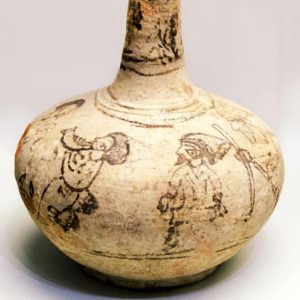 De la botella, una redoma aparecida en 1950 muy cerca de avenida de las ollerías, qué propia la ubicación! hemos descubierto: cómo llega al museo, qué contenía,su técnica, qué la hace excepcional, los personajes que, dibujados en torno a su ancha panza, interactúen lúdicamente: Un ambiente de alegría y fiesta con instrumentos musicales amenizando la escena donde se congregarían animadamente magia, música, cante, baile, malabares….