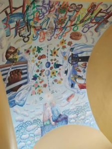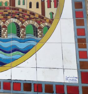 ¿Dónde está el artista Salvador Morera? exposición Retrospectiva 1980-2019 ya se clausuró pero ¡pasamos lista! seguirá presente y cercano en sus creaciones urbanas porque …. la bóveda pintada sobre la escalera del centro cívico centro en el mercado Sánchez Peña, que ya presentamos como adelanto, no es la única… ¿sabes que la hizo en tiempo récord? e improvisó bastante (eso es talento): lleno de símbolos, es un evocador homenaje a lo polifacética que es la vecina plaza de la Corredera, a sus usos a lo largo del tiempo, con una mirada joven, la de los niños que se asoman a la escena, como tú, claro.