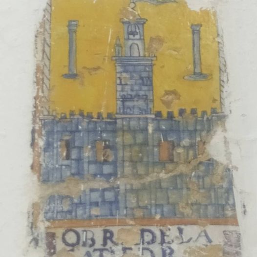 ¿Qué significaba ser «Obra de la Catedral»? ahí es nada. ¿Cual sería su función específica, cuando dejó de tener ese sublime propietario la vivienda a la que originalmente titulaba… ¿cuántos más de este tipo habrá dispersos por la judería?, porque como esta cerámica hay alguna más a lo largo y ancho de esta zona del casco histórico, a ver si las encuentras. Luminosamente esmaltada ya ves que, el protagonista, en el centro simétrico del dibujo esbeltamente alzada entre los muros almenados de la Fortaleza de la Fe que era la Mezquita alhama, – cristianizada ya entonces y convertida en Catedral -, es el campanario. ¿Se parece al actual?? Puedes llegarte a comprobarlo, está a escasos metros.
