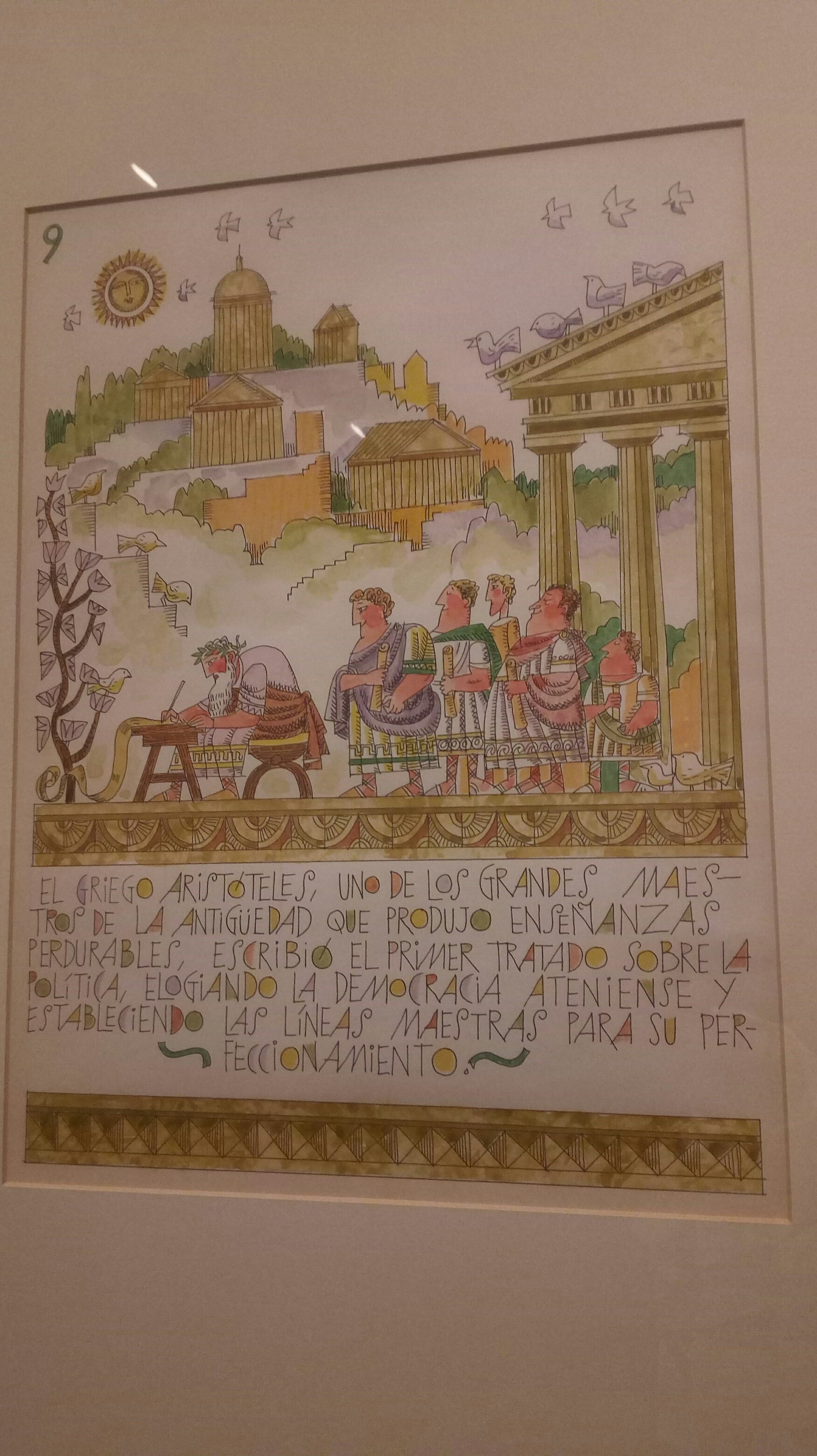 Y sumérgete en la muestra sobre todo en su faceta de ilustrador, quizá la más conocida. Recibió numerosos encargos, además de los dibujos que hizo por gusto, por iniciativa propia: busca el mensaje que subyace en cada uno de ellos, si no se te escapará el verdadero significado con el que los concibió: en tono jocoso o sarcástico, revestido de humor inteligente y valiente, también sutil, pone sobre la mesa con agudo ingenio las preocupaciones sociales de su tiempo (¿seguirán vigentes?): los deshumanizadores efectos de la especulación urbanística y de la sociedad de consumo, la crítica el franquismo, las desigualdades sociales en clave rural, presentadas desde el contrapuesto punto de vista del campesino y del terrateniente… También fue firme su defensa de los valores de la democracia y verás la paloma, el gran símbolo para Egea, “sobrevolando” incluso la sala de exposición: encarna para él la libertad que debe guiar a todos los pueblos y nuestra convivencia, la paz, el respeto de los derechos humanos, la solidaridad. ¿cuantas veces la encuentras?